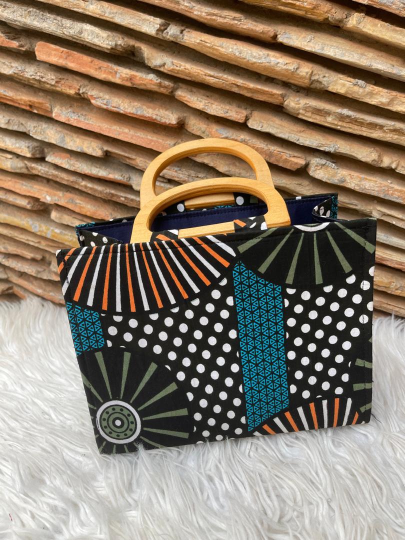 Elevate your fashion with the Royal Hollandia Handbag, a perfect blend of modern sophistication and traditional artistry. Made from premium Holland wax print sourced from the Netherlands, this luxurious bag features an Ankara print in rich, dark tones and a handcrafted wooden handle made from durable Odum wood. It's the ideal accessory, elegant and functional, for any occasion. Size: Small (9” L x 4” W x 7” H) – Perfect for day & night outings. Handcrafted in Ghana with authentic African craftsmanship.